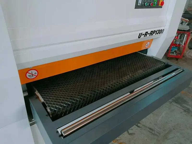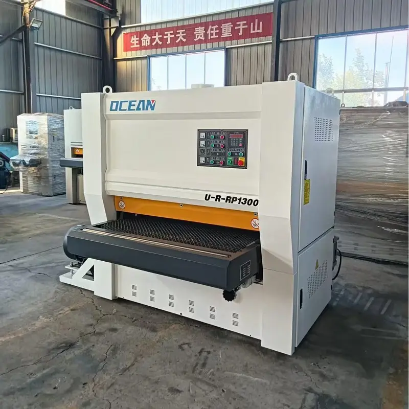 Шлифовальный станок с широкой лентой U-R-RP1300 разработан для высокоточной шлифовки древесных плит, включая МДФ, фанеру и массив дерева. Благодаря двум шлифовальным головкам и регулируемой скорости подачи он обеспечивает гладкую и эффективную обработку для мебельных фабрик и линий по производству панелей.